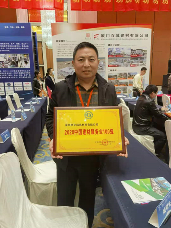 2020年11月6日,公司董事长臧明光先生受邀赴合肥参加中国建筑材料企业管理协会举办的中国建材企业发展论坛,暨中国建材企业500强系列活动发布会。我公司被评选为''2020中国建材服务业100强''之一。感谢协会对我们的支持和青睐,我公司会继续努力,创造更好的成绩。